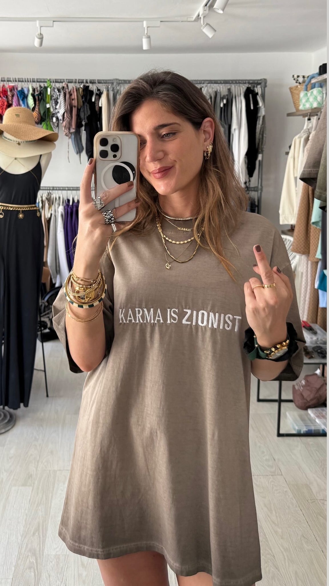 – Embroidered message: Karma is Zionist