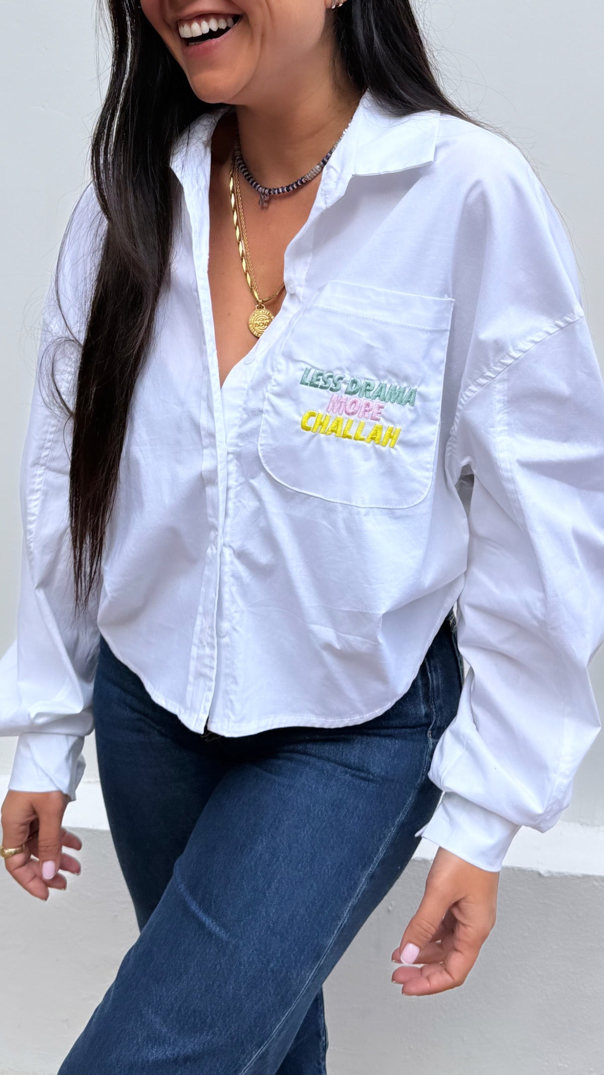 - חולצה לבנה מכופתרת בגזרת אוברסייז